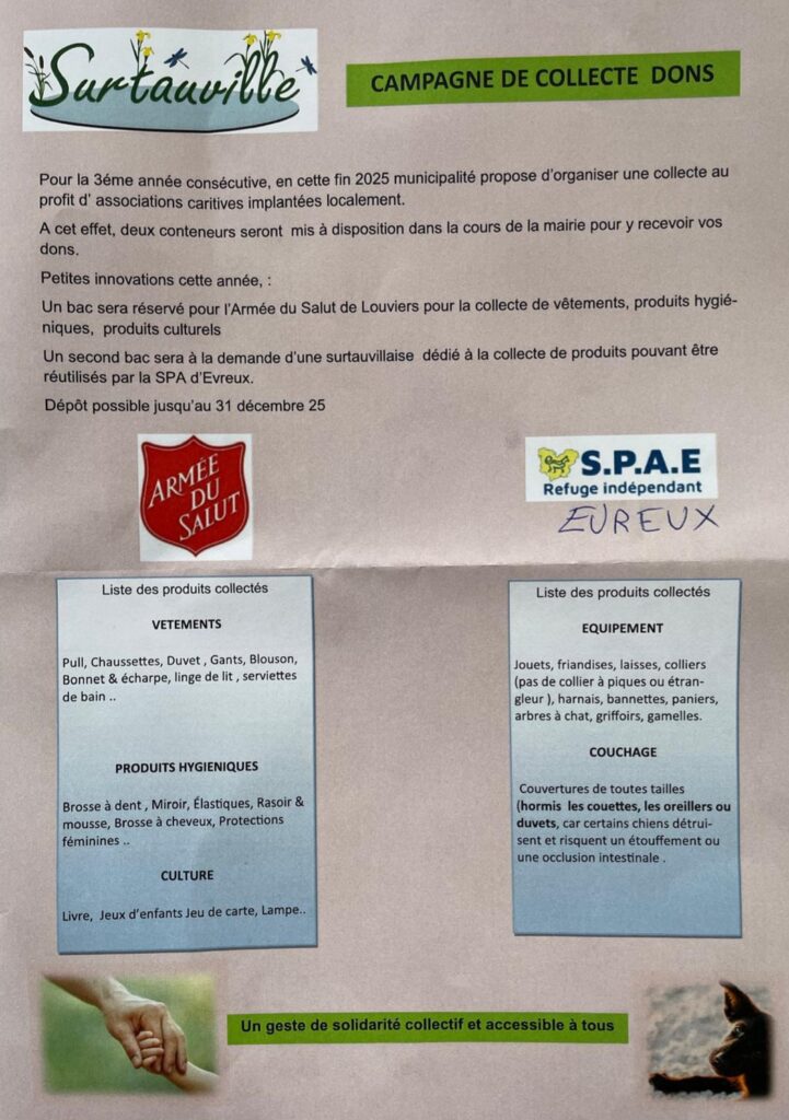 MERCI à La Municipalité de Surtauville, pour sa réactivité, sa bienveillance et la mise à disposition des moyens nécessaires au bon déroulement de cet élan de générosité.