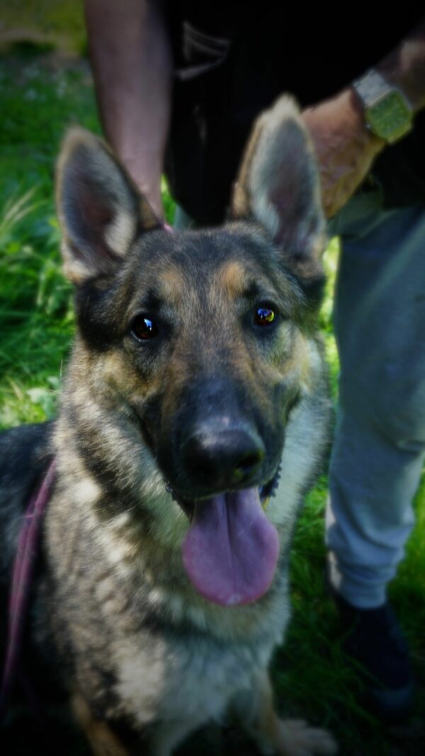 Suivie par notre éducateur F.Paris : chien très attentif, qui après un travail prend vite confiance et est stable émotionnellement .