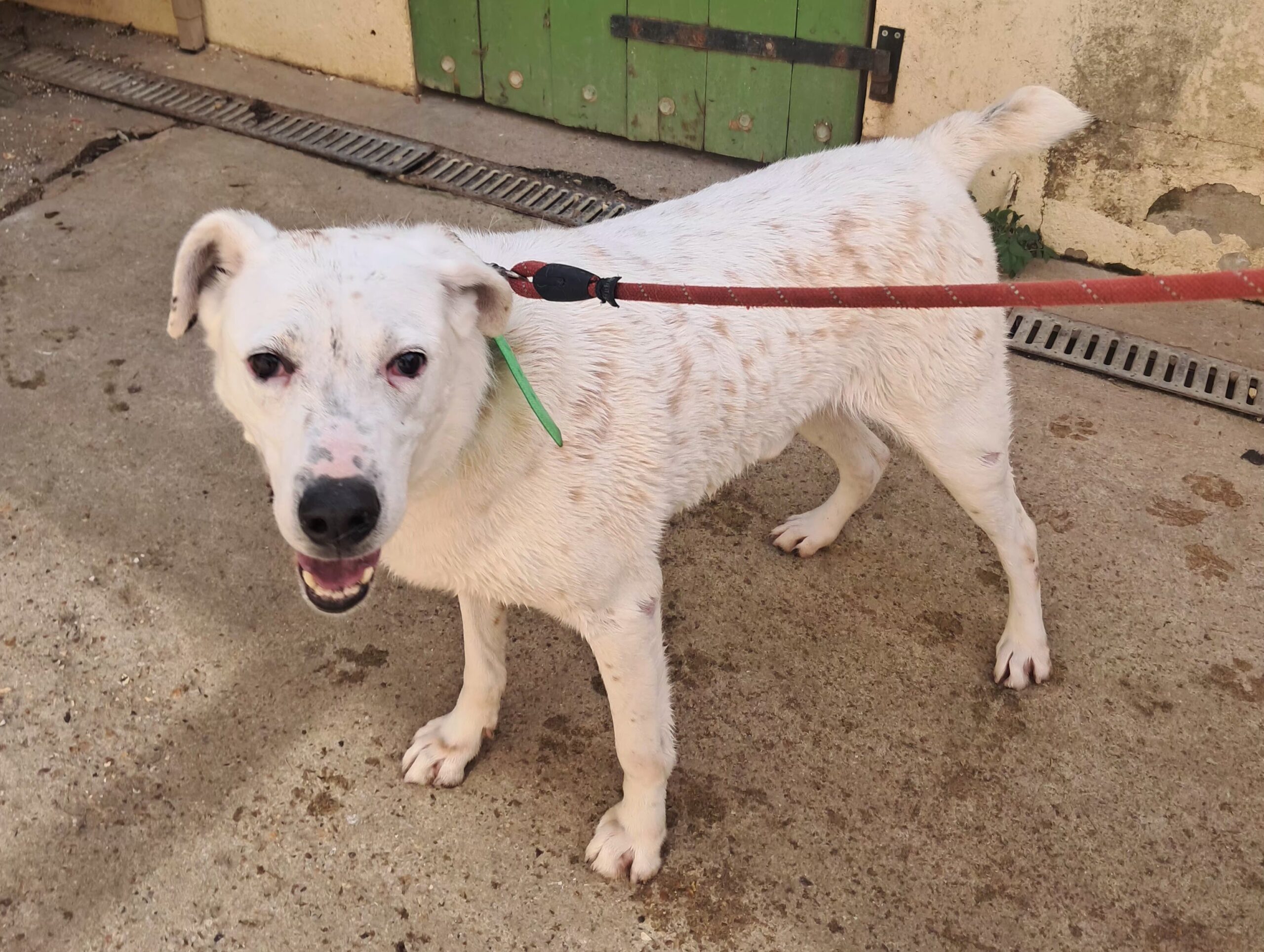 Lors de mon sauvetage, mes sauveurs se sont rendus compte que j’étais atteint d’une démodécie (problème de peau) sur tout le corps, comme vous pouvez le voir sur les photos prises le premier jour de ma nouvelle vie. J’étais alors extrêmement maigre et épuisé.