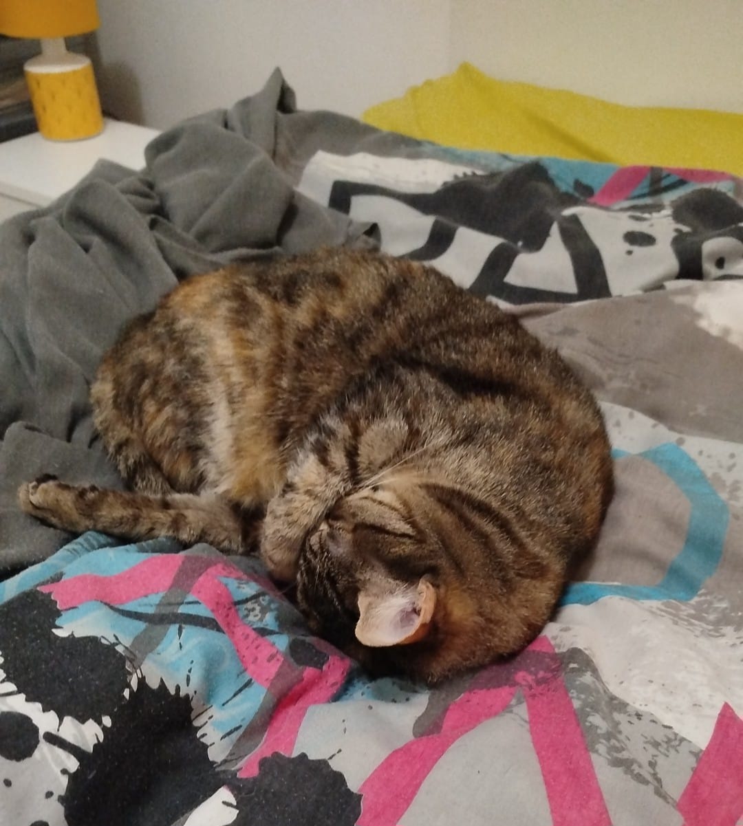 J’ai pu développer avec elle un quotidien du réveil ( dès qu’elle l’entend elle vient voir) jusqu’à lui donner à manger à la main pour ces petites friandises du matin ( elle miaule pour les réclamer).