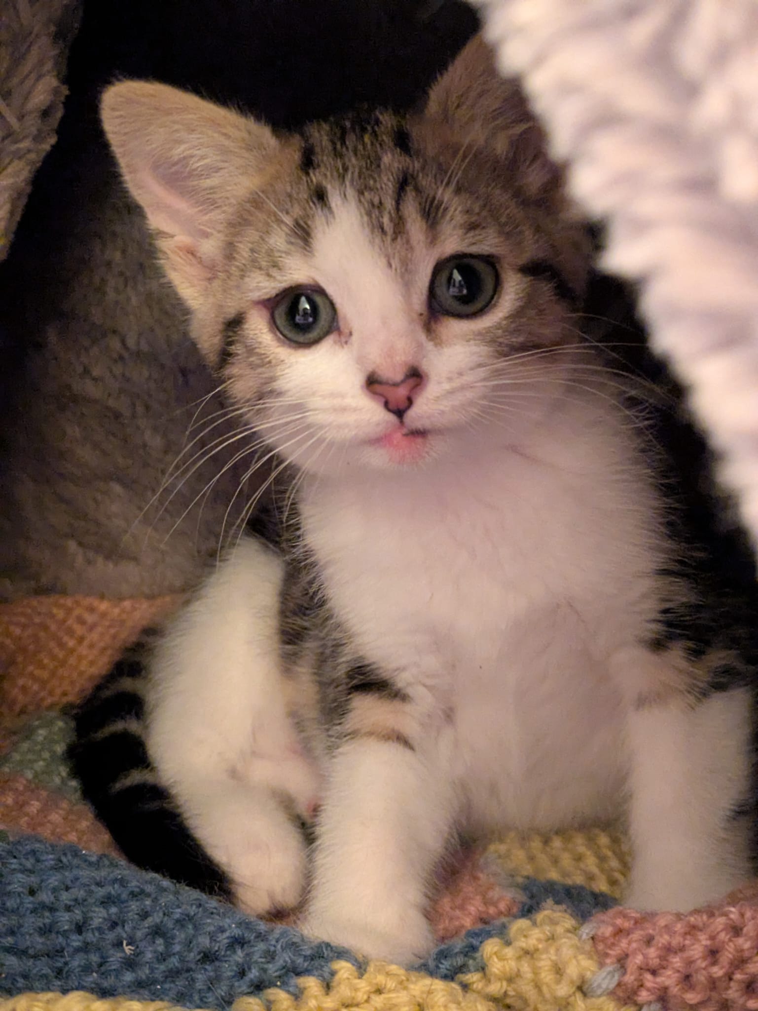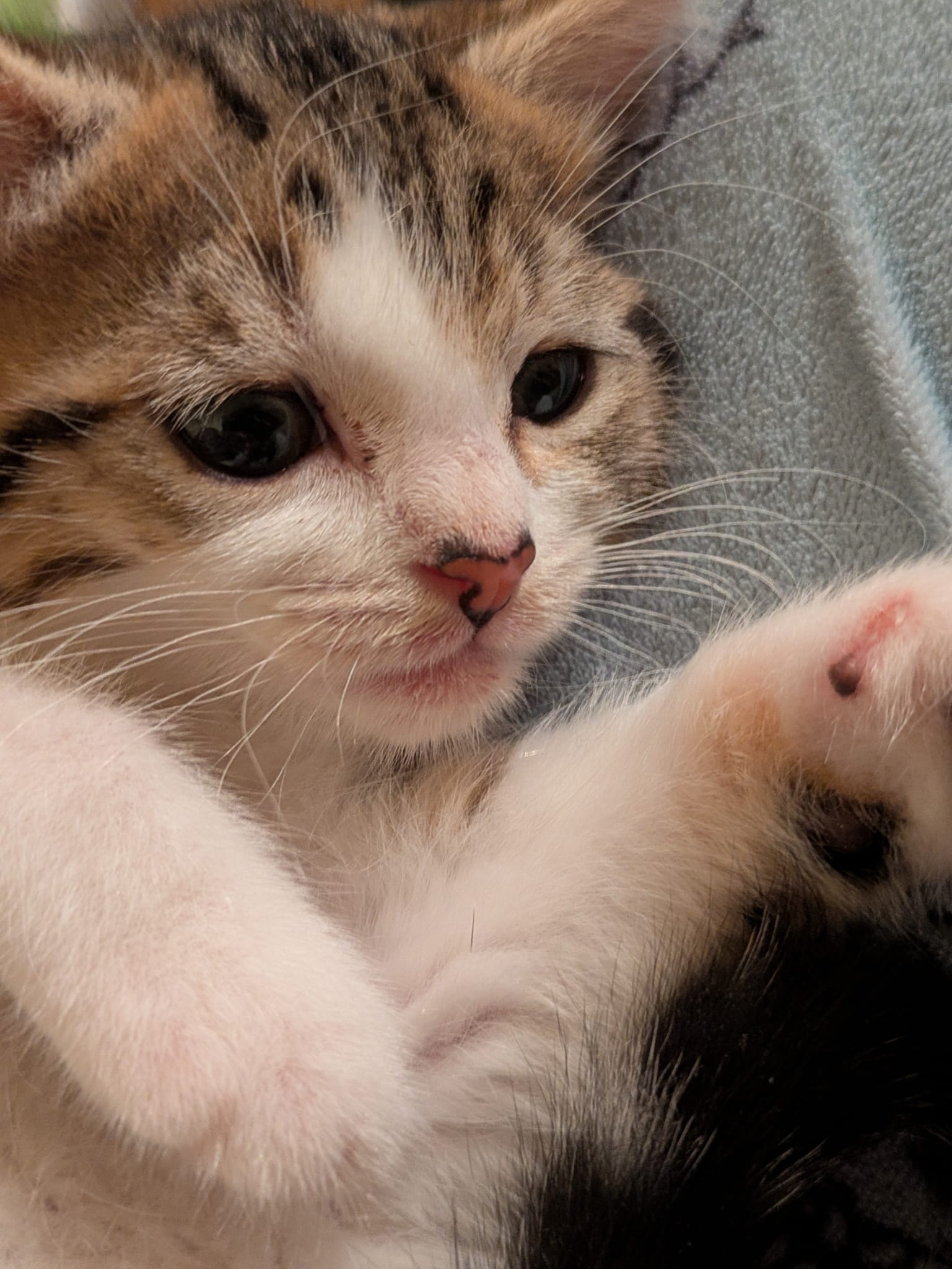 Willow, une chatonne toute tendre. C’est la plus costaude des filles. Mademoiselle est gourmande et est un peu moins énergique que ses sœurs. Elle reste joueuse et curieuse, mais elle est surtout tout en douceur. Elle aime se mettre sur ses pattes arrières et utiliser ses pattes (sans les griffes) avant pour toucher ce qu’elle ne connaît pas. Elle ronronne dès qu’on la touche et montre très vite son petit bidon. Elle adore être dans les bras, et se transforme en chamallow à la moindre caresse.